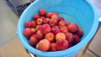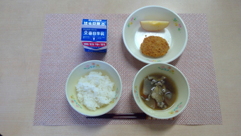 10月29日は「青森県の郷土料理」でした。献立は、「ごはん・イカメンチカツ・せんべい汁・牛乳・青森県産のりんご」です。4年生はとっても忙しい10月、宿泊学習の直後でしたが、給食委員さん、しっかりと青森県について調べ、青森県出身の先生にインタビューへ行き、給食放送をしてくれました。せんべい汁では、せんべいが入っているの?と驚く子も多かったですが、もちもちしてる!とたくさん食べてくれました。りんごは65個、皮をキレイに洗って、皮ごとくし切りにしました。りんごの皮には食物繊維や栄養もはいっています。また、しっかり噛むことができる食材です。1年生、65個もりんごを切ってくれたの?ありがとうございます!!と言いながら、しっかり噛んで食べていましたよ。
