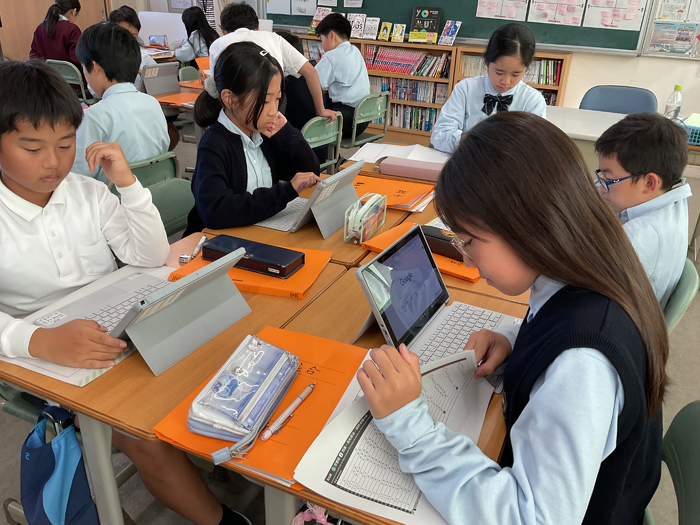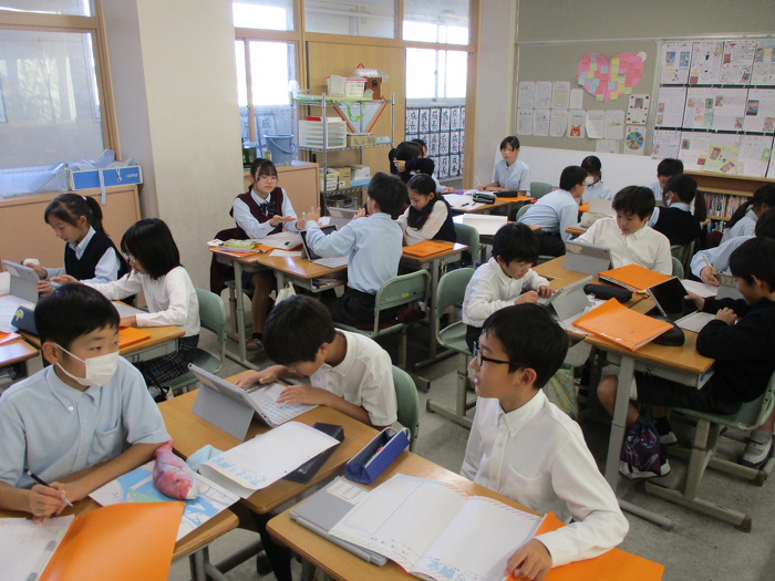 5年生の総合的な学習では、未来の京都についてを提案することを目指して、京都の現状について知る学習をしています。環境や伝統産業、世界遺産や公共交通機関など、良い点や課題点などの現状を探りながら学習を進めています。いよいよ明日はフィールドワーク。実際に京都の町に出て、様々な実態を学んできてほしいと思います。