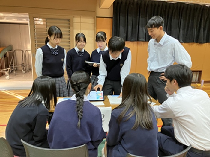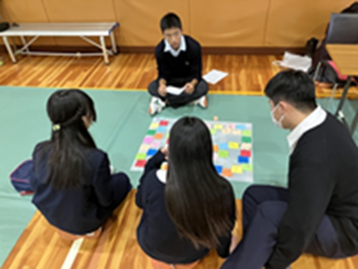 本校の総合的な学習の時間では、7年から9年までの3年間を通して「エネルギー」をテーマに探究を深めています。7年では自ら課題を見つけ、8年では掘り下げ、9年では社会へ広げることを目指してきました。9年生は4月から「誰に」「どのように」伝えるかを考え、小学生や外国人、大人など多様な対象に向けて発信活動を進めてきました。カードゲームやボードゲームを作って子どもたちにエネルギーの大切さを伝えたり、英語を使って外国の方に日本のエネルギー事情を紹介したりと、工夫を凝らした取組が続いています。
