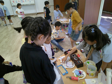 今日は朝から7年生との交流が行われ、クイズラリーに挑戦しました。日本とタイの生徒が混ざったグループで協力しながら課題を解き、言葉を超えたつながりを感じていました。3・4時間目には、5・6年生がタイの生徒からタイの文化を学ぶCTLの時間をもち、タイの文化を紹介してもらいました。タイの伝統的な凧づくりでは、細かな作業に苦戦しながらも、互いに助け合いながら完成させ、教室中に達成感と歓声が広がりました。