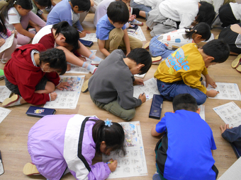 お兄さん・お姉さんたちが工夫してつくったおもちゃに大喜びの1年生。優しく説明してくれて、たっぷり遊ばせてくれて、とても楽しい時間になりました。