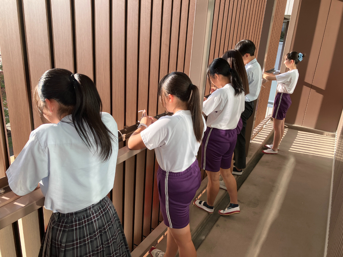 9年生は、総合的な学習の時間において「エネルギー」をテーマに探究活動を進めています。本校では、7年生で「知る」、8年生で「深める」と段階的に学びを積み重ね、9年生ではその集大成として「広げる」をテーマに、多様な対象に働きかけながら学びを展開しています。今回の中間発表では、生徒たちが互いのグループを訪れて発表を聞き合い、助言を交わすことで、研究をさらに高め合いました。発表内容は多彩で、エネルギー施設のジオラマ製作、子どもでも楽しみながら学べるカードゲームやすごろく、演劇による表現、さらには自転車をこいで電気を生みラジオを点ける体験など、実践的で創意工夫に富んだ取り組みが披露されました。また、外国人への意識調査や動画制作、ボードゲーム開発など、小学生から社会人まで幅広い層を対象に学びを発信する姿勢も見られました。こうした活動を通じて、生徒たちはエネルギー問題を多角的にとらえ、自らの学びを社会へとつなげていく力を育んでいます。