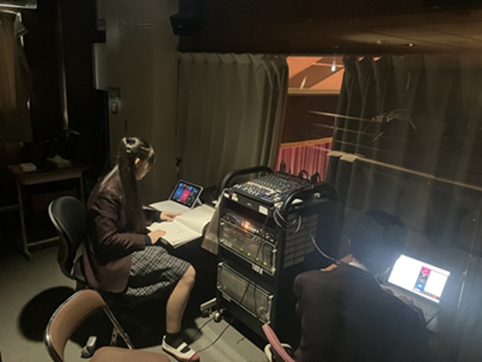 劇づくりには、キャストとして舞台に立つ生徒だけでなく、舞台全体を支える多様な役割があります。演出の方向性を決め、舞台の世界観をつくり上げる監督・助監督。物語の雰囲気を大きく左右する背景画。場面転換を助け、臨場感を生む大道具。登場人物の行動を自然に引き立て、物語を支える小道具。音楽や効果音で現実味と迫力を演出する音響。キャストの表情や動きを照らし、舞台の印象を決める照明。そして登場人物の個性を形づくり、物語の世界観に深みを与える衣装など、実に多くの担当が互いに支え合いながら舞台をつくり上げています。みんなに支えられてキャストの生徒にも気合が入ります。比叡山に向かった発声練習をしていました。