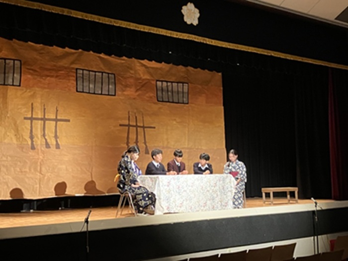 「演じる人」「つくる人」という分担にとどまらず、学級の全員がそれぞれの立場で責任を持ち、一つの舞台を完成させようと力を尽くしています。意見を出し合い、時にはぶつかりながらも、より良い表現を目指して試行錯誤を続けるその姿には、9年生らしいまとまりと成長が感じられます。劇づくりは単なる発表ではなく、学級の結束を表す大切な場でもあり、互いの良さを認め合いながら一つの作品が形になっていく過程そのものが、すでに大きな学びとなっています。