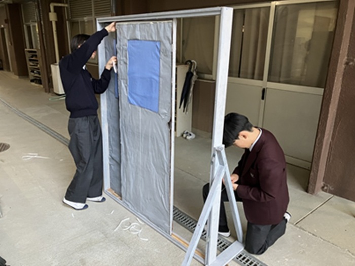 8年生は、世界の国をテーマに各学級でテーマを決め、そのテーマに沿って、パビリオンを作っています。