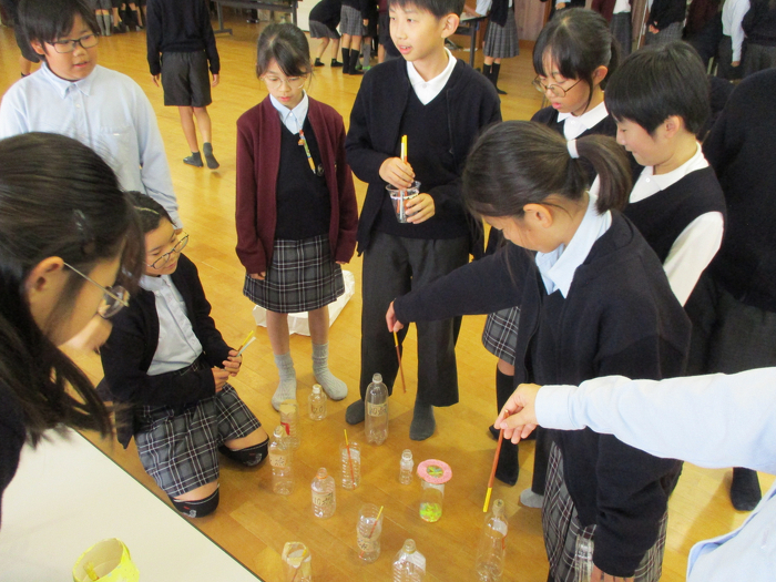 5年生は紫友祭で「彩広場」というブース発表を行います。来てもらう人に楽しんでもらうにはどうすればよいかを、発表に向けて各グループで考えて準備を進めています。17日の学習では、学年でお試しブース発表を行い、それをもとにお互いにフィードバックをしあう活動も行いながら、よりよいブース発表に向けて取り組みました。