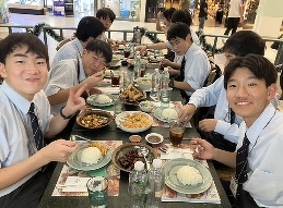 昼食はレストランでタイ料理をいただきました。辛さが控えめに工夫されており、生徒は安心して食事を楽しみ、ゆっくりと休息をとることができました。