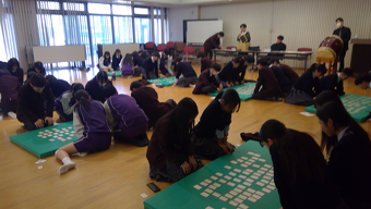時は鎌倉時代に歌人の藤原定家が名歌を読んだことで始まった百人一首。令和8年1月30日に、8年生の学年で百人一首大会を行いました。神経を研ぎ澄ませ、太鼓とともに訪れる静寂のとき。静から動へ。畳の上で熱い戦いが繰り広げられました。