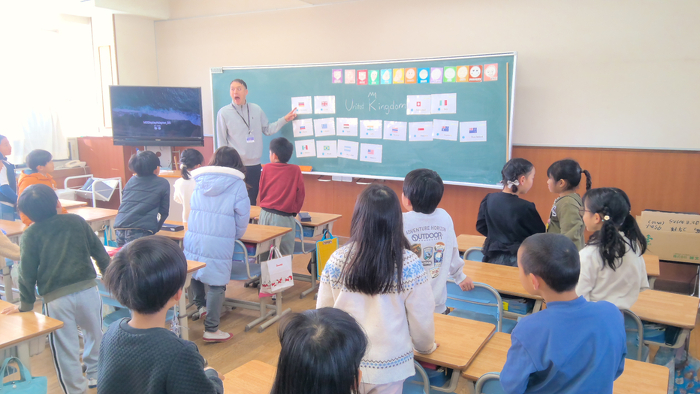 2026年01月22日 2年生 世界の国名を英語で言ってみよう 英語の時間に世界の国の名前をリズムに乗せて学習しています。日本語との発音の違いや、イントネーションに驚きながら、ALTの先生と練習をしていました。授業の後半になると子どもたちは自信が出てきたのか、より大きな声で発音することができていて、繰り返し練習した成果を感じることができました。