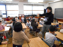 みんなが授業で使っているクレヨンや絵の具、消しゴムなどを作っている「ぺんてる」の会社の方と