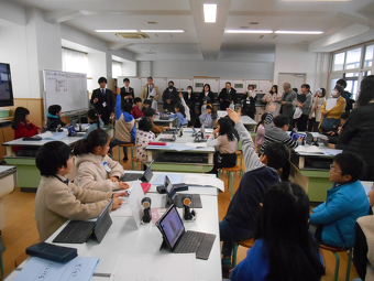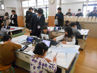 子どもたちは全国から集まったたくさんの先生方に囲まれて少し緊張気味でしたがいつも通り元気よく授業に臨んでいました。