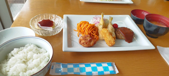 先ほど宿舎に到着し、入浴後、豪華な夕食を堪能します。