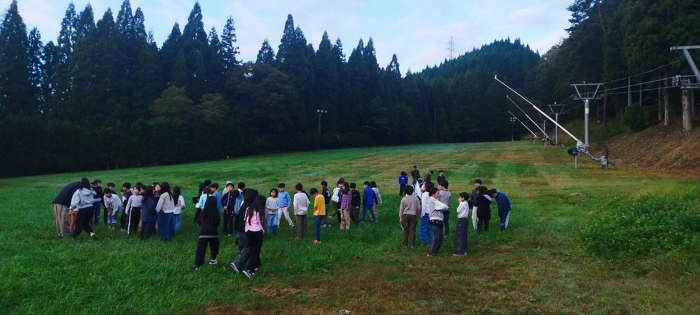 天候にも恵まれ、涼しくさわやかな朝です。朝の集いで元気に体を動かしたあと、朝食バイキングを楽しみました。