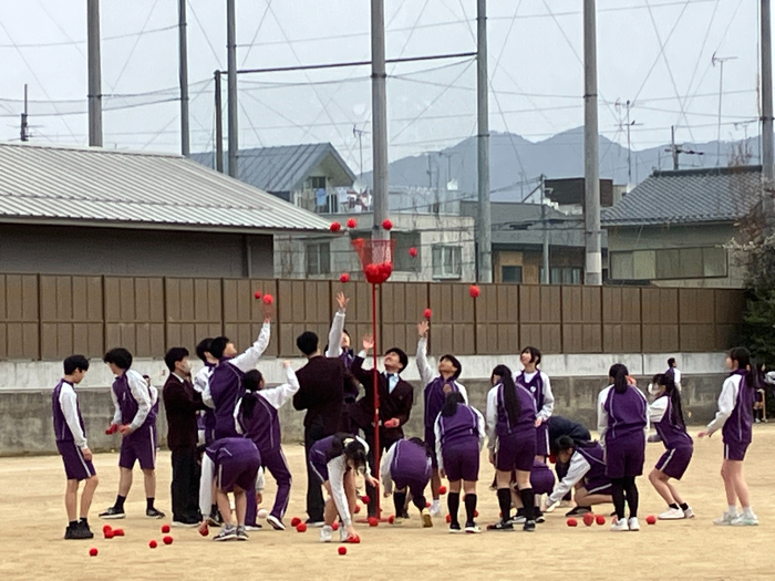 9年生では、球技大会に向けた準備と練習が進んでいます。競技種目は、生徒同士の話し合いを通して「全員が楽しめること」を基準に決定しました。玉入れ、大玉転がし、グラウンドゴルフ、ドッヂボールの4種目です。