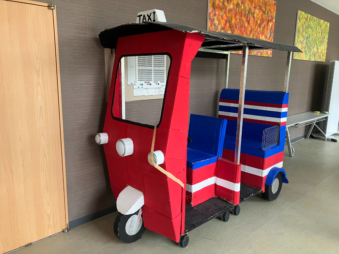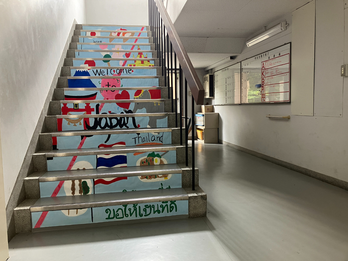 校内では、タイと日本の国旗や伝統的な模様などを取り入れた装飾が少しずつ完成に近づいています。玄関や廊下には歓迎のメッセージや生徒が製作した装飾、階段を使った装飾などが並び、訪問を心待ちにする雰囲気が高まっています。こうした活動の背後には、本校が掲げる国際理解教育の方針があります。