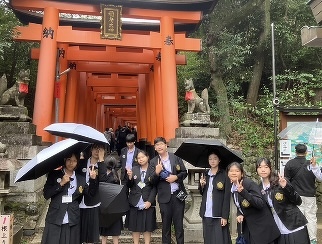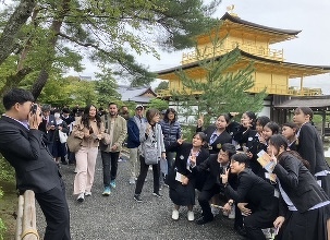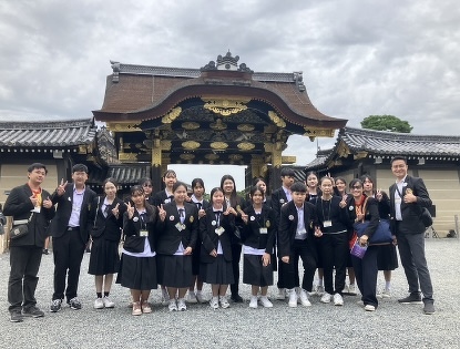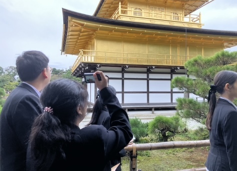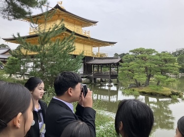 出発後は、京都の代表的な名所をめぐりました。まず金閣寺を訪れ、輝く金色の舎利殿を背景にたくさんの写真を撮りました。続いて二条城では、日本の歴史や建築の美しさに興味深そうに見入る姿がありました。伏見稲荷では千本鳥居を歩きながら、日本らしい風景を最後まで楽しんでいました。