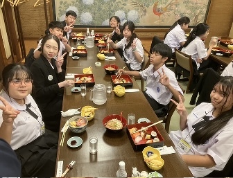 最終日の朝、タイの生徒たちはホテルを出発する前にホストファミリーと再会しました。短い間ながら家族のように過ごした日々を思い出し、別れを惜しむ姿があちこちで見られました。手を取り合って別れを惜しむその表情には、言葉を超えた絆が確かに刻まれていました。見送りに来てくださったホストファミリーの温かなまなざしが、この一週間の交流の深さを物語っていました。