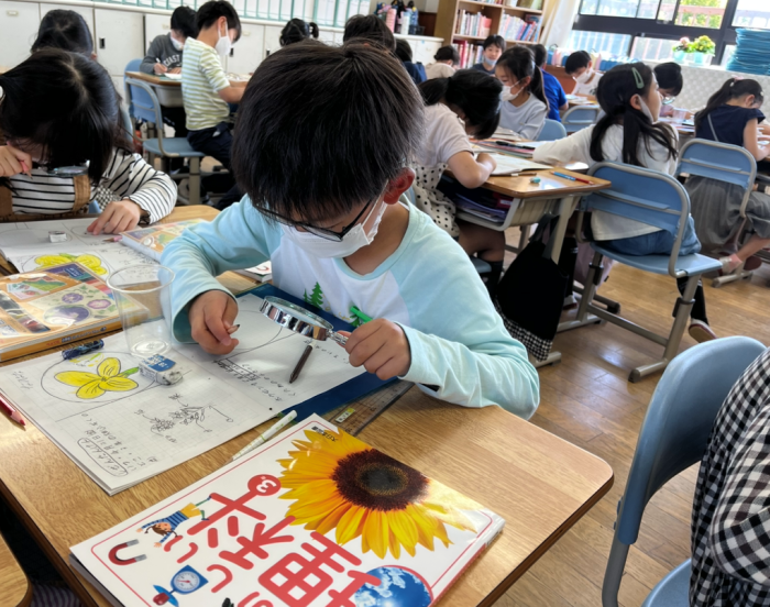 3年生の理科では,植物の育ち方について学習をしています。ホウセンカやヒマワリなどの種を,色・形・大きさに着目して,詳しく観察しました。観察後は,畑に植えました。今後どのように育っていくのかを調べていきます。