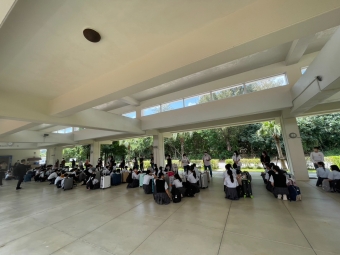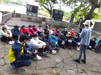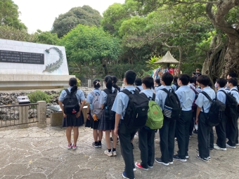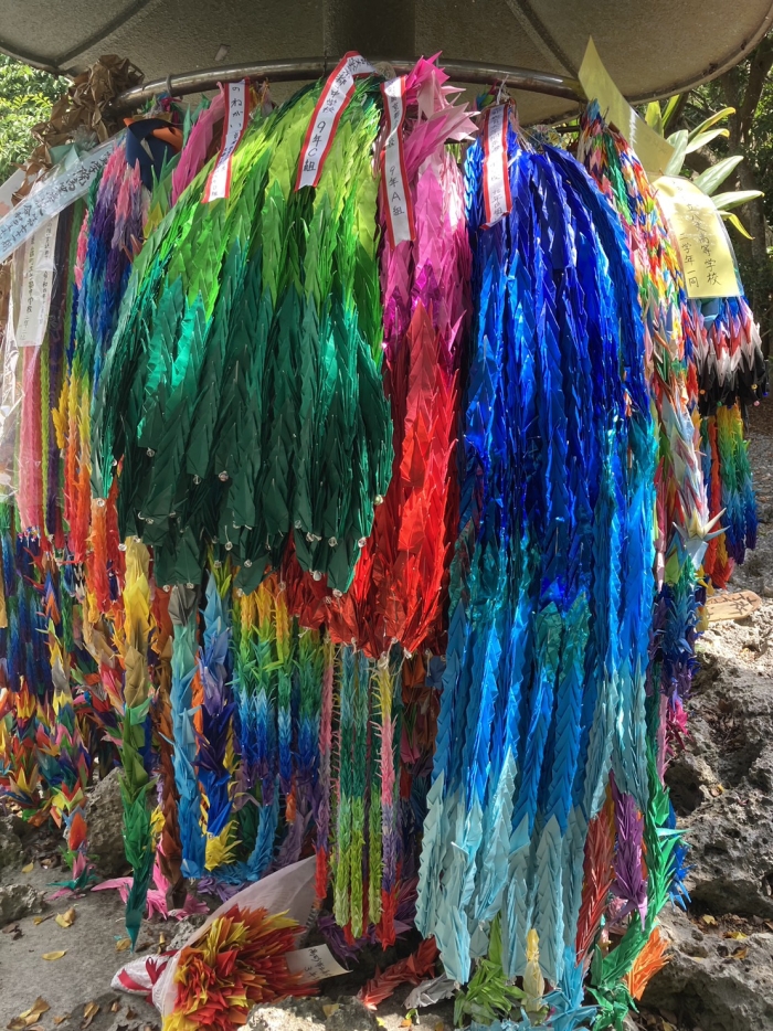 今日はガイドさんの案内でガマに行き、その後ひめゆりの塔を訪れ、学校で折った千羽鶴を平和の祈りを込めて奉納しました。
