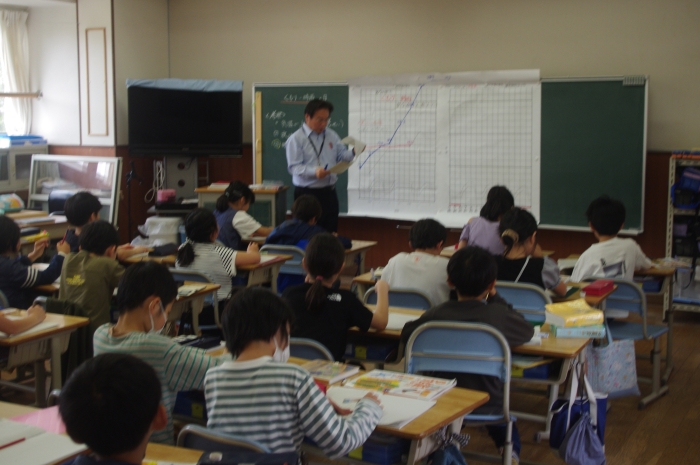 理科「天気と気温」では、天気によって1日の気温の変化の仕方に違いがあることを理解するために学習を進めています。温度計を使って気温を測り、天気による気温の変化の特徴を読み取りました。