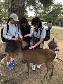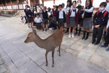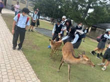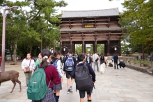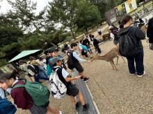 前日までの雨模様、曇り空が嘘のように、秋晴れの遠足日和になりました。事前に準備した計画表に沿って、班ごとに分かれ、奈良公園付近を探索しました。東大寺や春日大社などの歴史ある寺社をめぐり、日本の歴史を肌で感じたり、奈良公園内で鹿せんべいをあげて、鹿とふれあったりと、様々な経験を楽しむことができました。