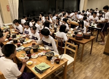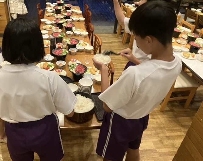 8年生の林間学舎は3日目の行程を終えました。夕方からは宿舎内で係別活動を行い、夕食を食べました。