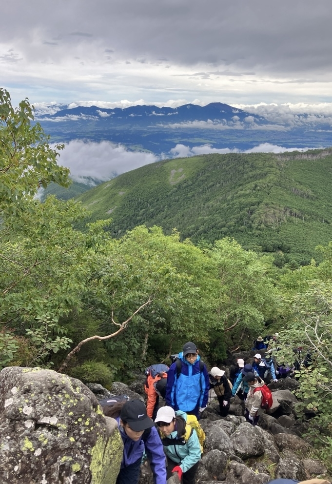 8年生林間学舎3日目は当初の予定を変更して、午前は女神湖散策と車山でのショッピングでした。午前中は何とか天気が持ちこたえたので、学年写真と学級写真をとることができました。車山スカイプラザではりんごや野沢菜、七味などのお菓子や飲み物がたくさんあり、思い思いのおみやげを選んでいました。昼食は、登山の予定だったためおにぎりでしたが、宿舎のご厚意でお味噌汁を用意していただき、美味しくいただきました。