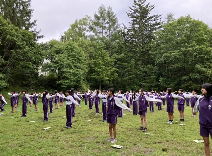 天候の影響と台風による強風に備えて、キャンプファイヤーは中止し、キャンプファイヤーのためにレクリエーション係が準備していた活動は体育館で行いました。体育館ではタッチキラー、リレー、じゃんけん列車などを行って親睦を深めました。最後はみんながとても楽しみにしていたフォークダンスで締めくくりました。レクリエーションを存分に楽しみ少し予定の時間をオーバーしましたが、宿舎に戻り班終礼と班長会で1日の生活を振り返り就寝しました。